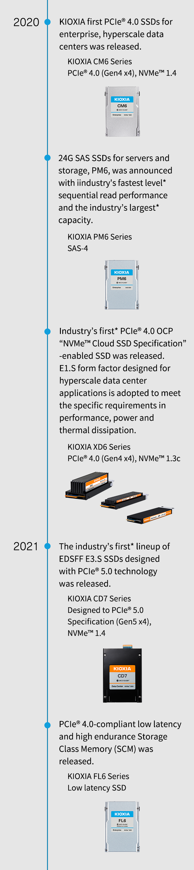 As use of the Internet and cloud computing grew significantly and expectation of potential demand and market growth in the enterprise storage and server markets, KIOXIA began full-scale development of SSDs for enterprises and data centers, in addition to client SSDs. SSD interfaces are evolving to further increase performance.