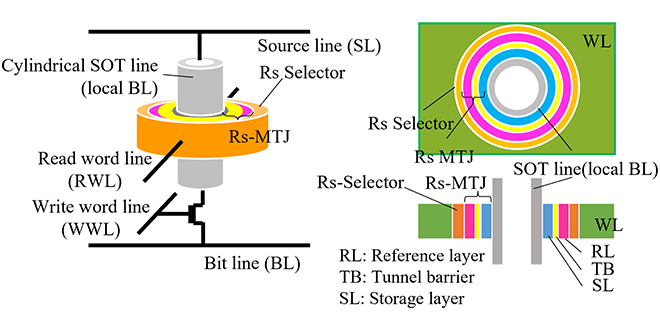 We fabricated a 64 Gbit cross-point MRAM (Magnetic Random Access Memory) with the world’s smallest cell area of 0.001681 μm2 and demonstrated reliable memory cell operation. This achievement paves the way for MRAM applications in SCM (Storage-Class Memory).