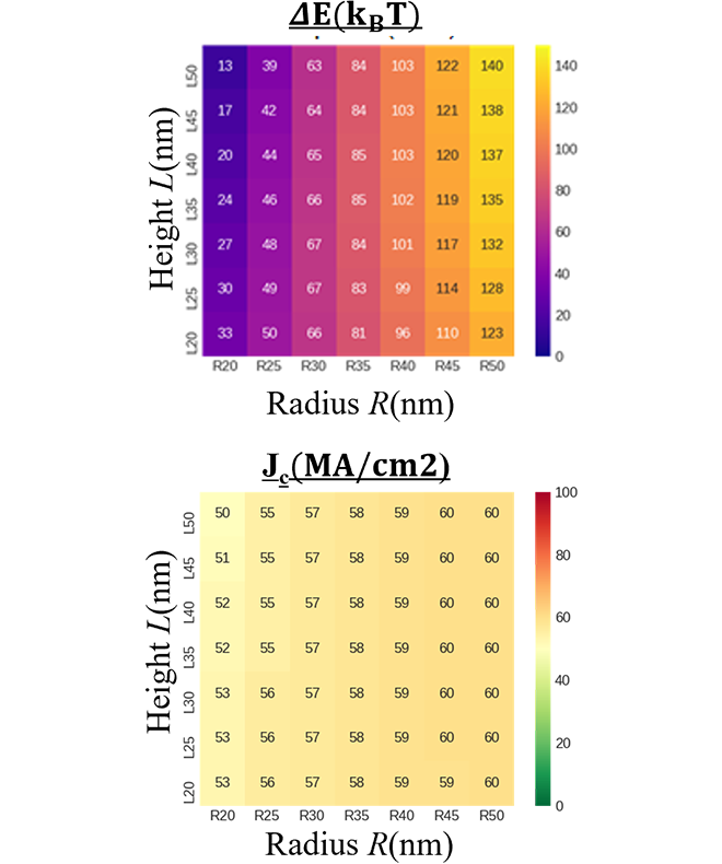 We also estimate the magnetic retention energy (ΔE) and the current density (Jc) at the SOT writing operation through the analytical calculation based on the macro-spin model. The results indicate that these can be optimized for scalability by adjusting the radius (R), the height (L) and the thickness (t) of the Rs-SL.