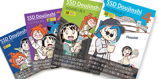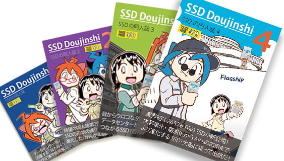 「SSD Doujinshi」は、ビッグデータやAI社会を支えるSSDや、フラッシュメモリの技術を紹介する同人誌です。さまざまなSSDの種類、SSDの原理、自作SSDの製作について記事や漫画で分かりやすく説明しており、他では読めないコンテンツが満載です。