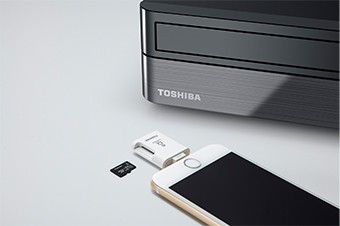 本商品を差し込んだカードリーダを、iPhone / iPadに接続することで、SeeQVault対応レグザ(テレビ)/レグザブルーレイ/レグザサーバー[注2]で本商品に記録したHD画質の録画番組をiPhone / iPadで再生することができます[注3]。