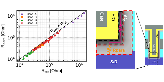 エレクトロニクス技術における世界的な研究機関imecと共同で、次世代高密度メモリセルアレイの構成要素である選択素子の信頼性を検討しました。繰り返し動作に伴い生じる閾値変動をもたらすメカニズムを高精度な電気特性評価技術とモデリング技術を融合させて明らかにしました。この成果は国際学会IEDM2022で発表されました。